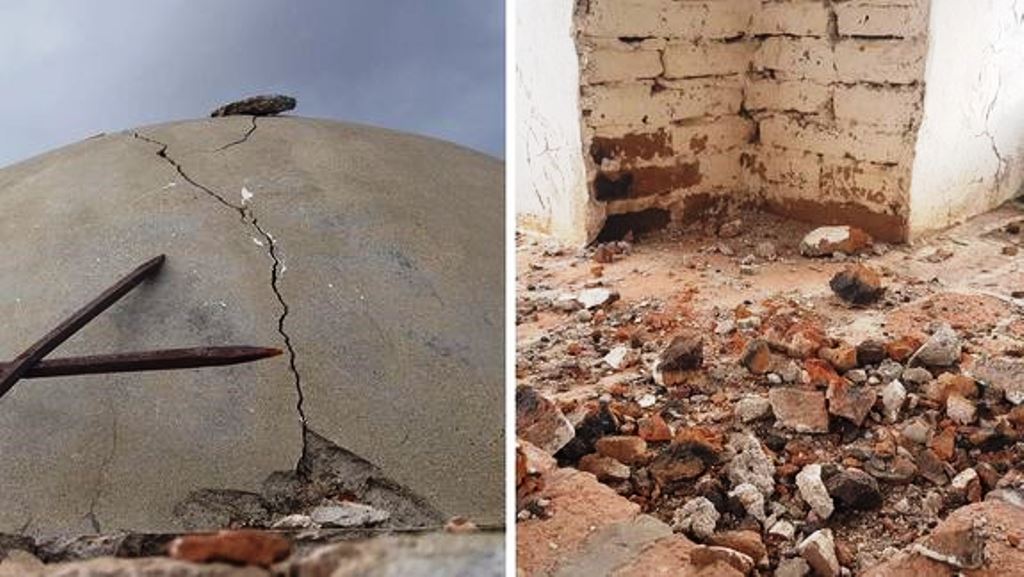 “La iglesia de Santa Bárbara ubicada en lo alto del poblado, data de 1764, construida en adobe y cubierta de tejas, lamentablemente sufrió el derrumbe de la torre campanario, sin presentar daños en su nave central y su cubierta. En un primer registro podemos asegurar que la reconstrucción total de la torre y otras observaciones que forman parte del informe preliminar son fundamentales, pero estamos avanzando en el diagnóstico integral de ambas iglesias”