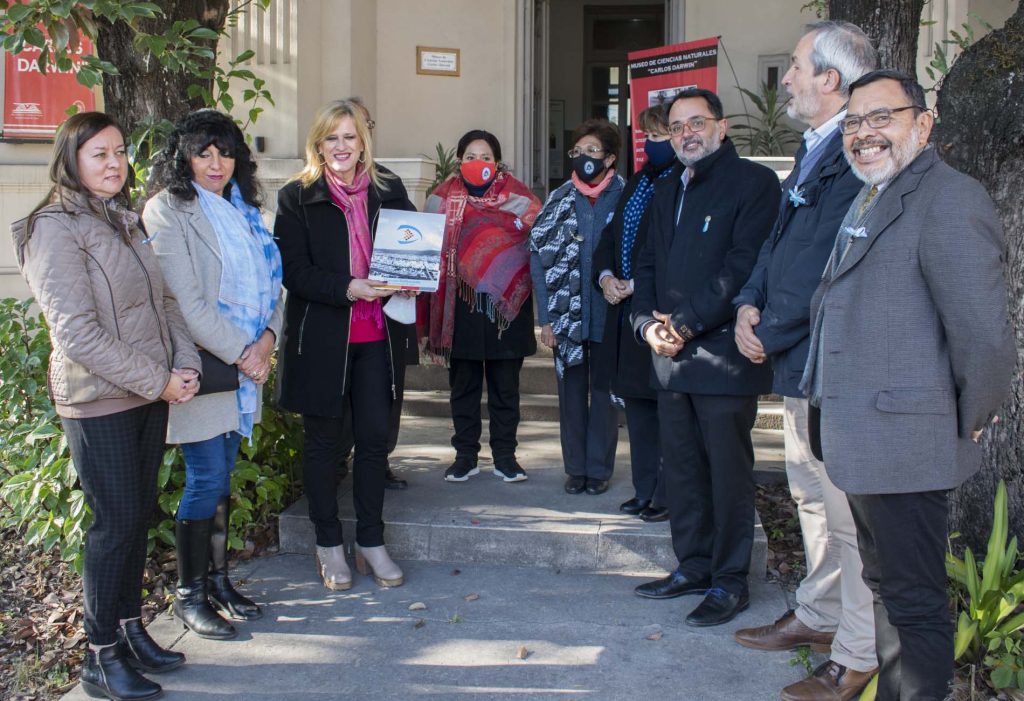 El presidente del Concejo Deliberante, Lisandro Aguiar y el concejal José Rodríguez Bárcena, entregaron a directivos del Colegio Nacional N° 1 “Teodoro Sánchez de Bustamante” una copia de la Minuta N° 24/2022 que declara de Interés Cultural y Educativo el Museo Carlos Darwin.