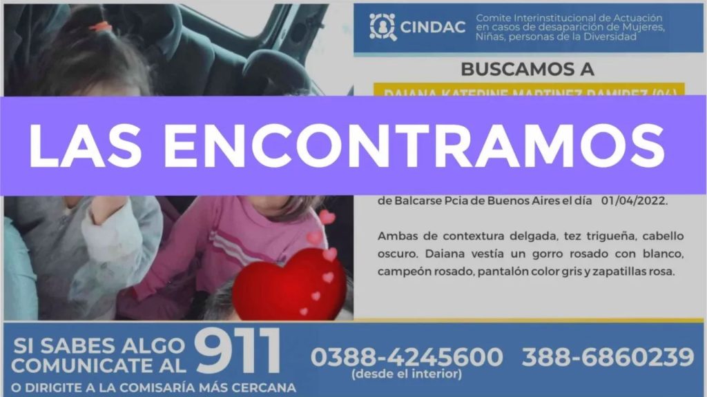 Cabe aclarar que las niñas eran intensamente buscadas por la Policía de Buenos Aires y el CINDAC de la provincia de Jujuy.
