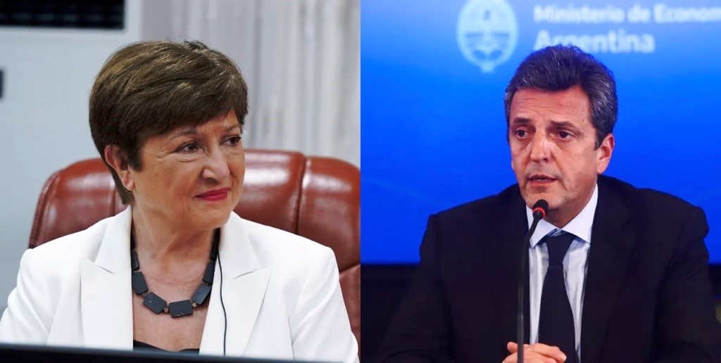 La delegación que acompañará a Massa está integrada por el titular del Banco Central, Miguel Pesce, y la presidenta del Banco Nación, Silvina Batakis, quien estuvo sentada con la directora Gerente del organismo hace poco más de un mes, cuando estuvo al frente del Palacio de Hacienda.