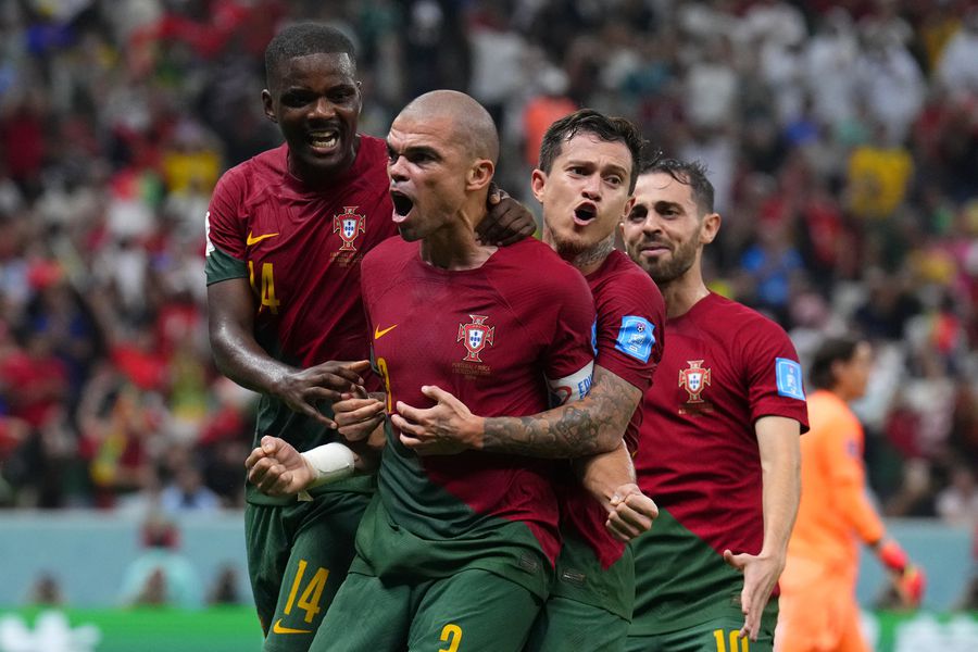 Los lusos, líderes del Grupo H, comenzaron mejor en el encuentro y rápidamente lograron ponerse en ventaja. A los 17 minutos, Gonçalo Ramos, que jugó por la decisión del entrenador de dejar en el banco a Cristiano, controló en el área, giró para la zurda y sacó un tremendo remate que se colgó en el ángulo derecho de Yann Sommer. Apenas pasada la media hora de juego, tras un córner desde la izquierda, Pepe ganó de cabeza en el área y estiró la ventaja en el marcador, con la que se fueron al descanso.