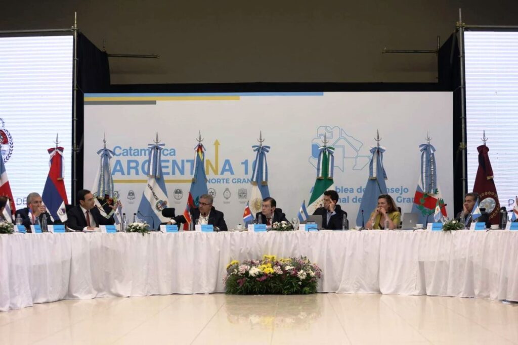 El gobernador Gerardo Morales estuvo presente en 16º Asamblea del Consejo Regional del Norte Grande que se celebró en San Fernando del Valle de Catamarca, en cuyo marco se presentó la Estrategia Logística para el Norte Grande Argentino trazada con la valiosa colaboración del Consejo Federal de Inversiones (CFI), a los efectos de revertir debilidades, potenciar capacidades y resolver necesidades en materia de transporte de cargas, ferroviario, fluvial-marítimo y aéreo, pasos fronterizos y corredores bioceánicos.