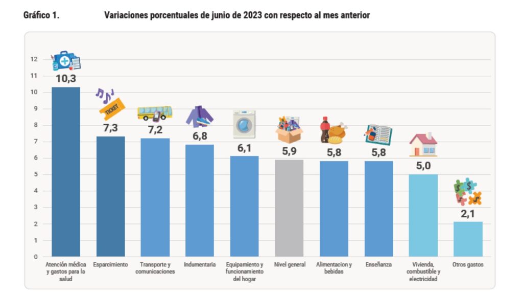 El nivel general del Índice de Precios al Consumidor de San Salvador de Jujuy registró en el mes de junio una variación de 5,9 % con relación al mes anterior. Así, la inflación interanual alcanzó el 112,9 %