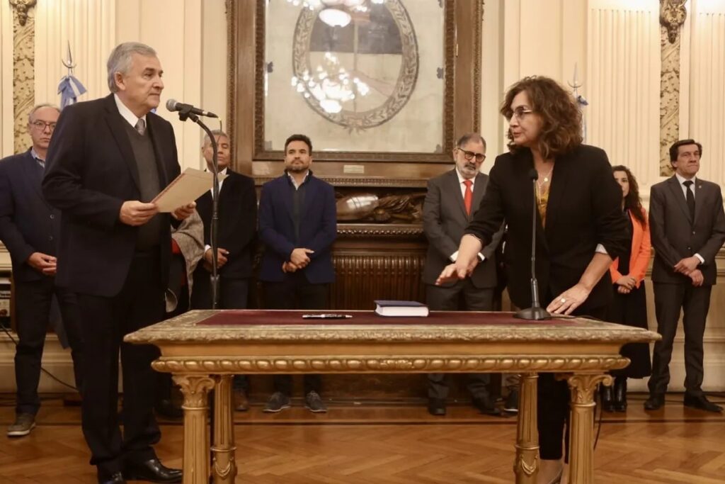 El gobernador Gerardo Morales puso en funciones a la nueva ministra de Educación, Miriam Serrano; al viceministro de Educación, Julio Alarcón; y a la secretaria de Equidad Educativa, Victoria Luna Murillo. La ceremonia se realizó en el Salón de la Bandera de Casa de Gobierno.