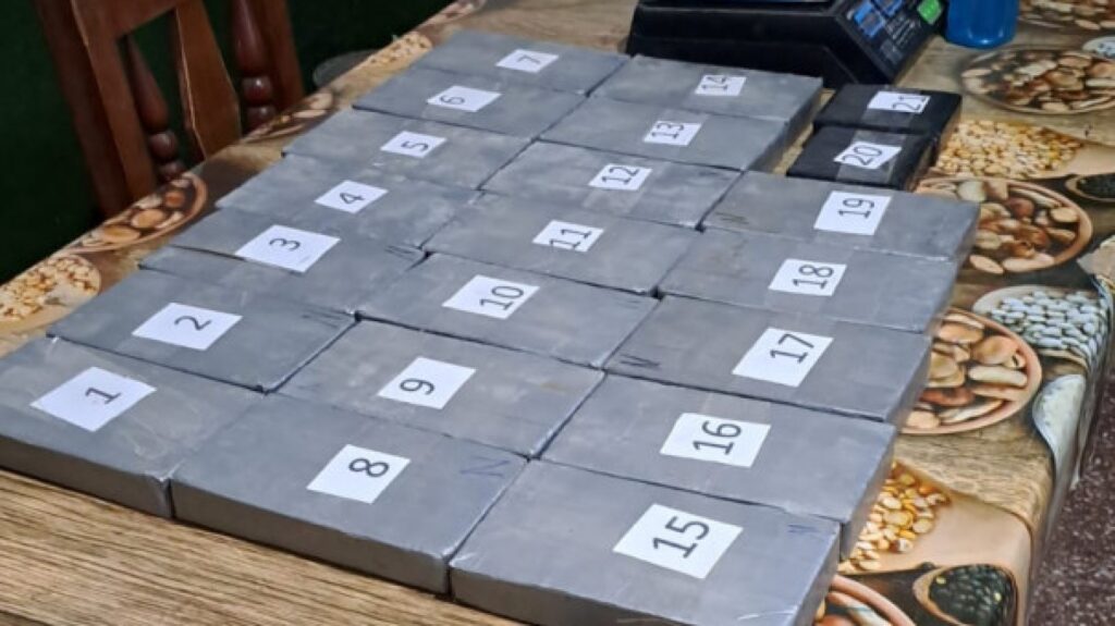 Tras la apertura de un doble fondo, descubrieron 21 paquetes rectangulares que contenían una sustancia blancuzca. Tras ser sometida a las pruebas de campo Narcotest, las mismas arrojaron resultado positivo para cocaína con un peso total de 21 kilos 530 gramos.