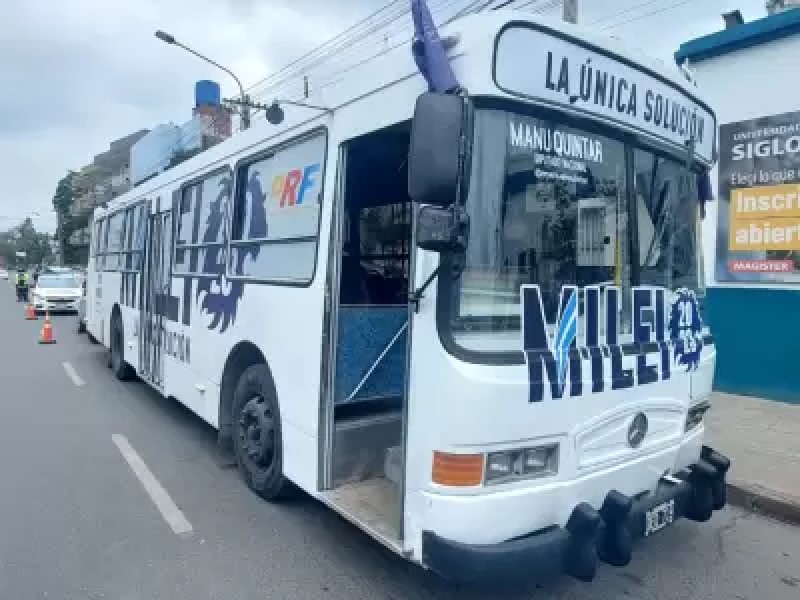 En el marco de la campaña electoral que finaliza mañana, uno de los colectivos que participan de la campaña presidencial de Javier Milei, candidato a la presidencia por La Libertad Avanza, protagonizó un incidente vial en el centro de San Salvador de Jujuy: Chocó a una camioneta y a un vehículo, pero estaba flojo de papeles.