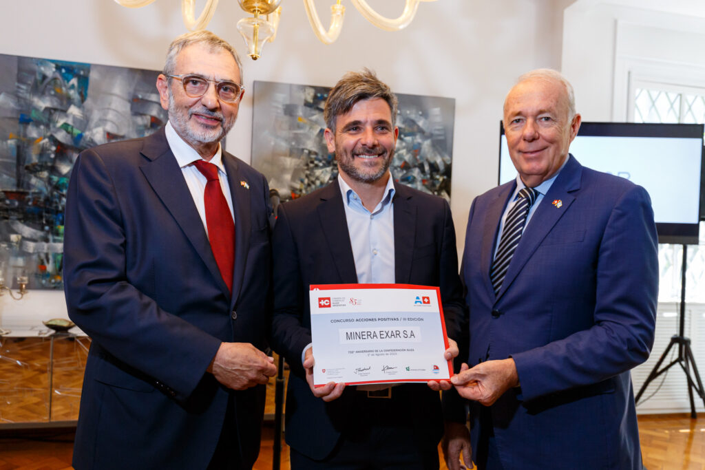 Exar, empresa líder en la producción de carbonato de litio en la provincia de Jujuy, fue agasajada por el embajador de Suiza, el Sr. Hans-Ruedi Bortis, por haber obtenido el Premio Integral en la categoría “Grandes Empresas”, en el Concurso “Acciones Positivas 2023”, otorgado por la Cámara de Comercio Suizo Argentina (CCSA). A su vez, la compañía fue distinguida por el Foro Ecuménico Social, gracias al Informe de Sostenibilidad 2022.