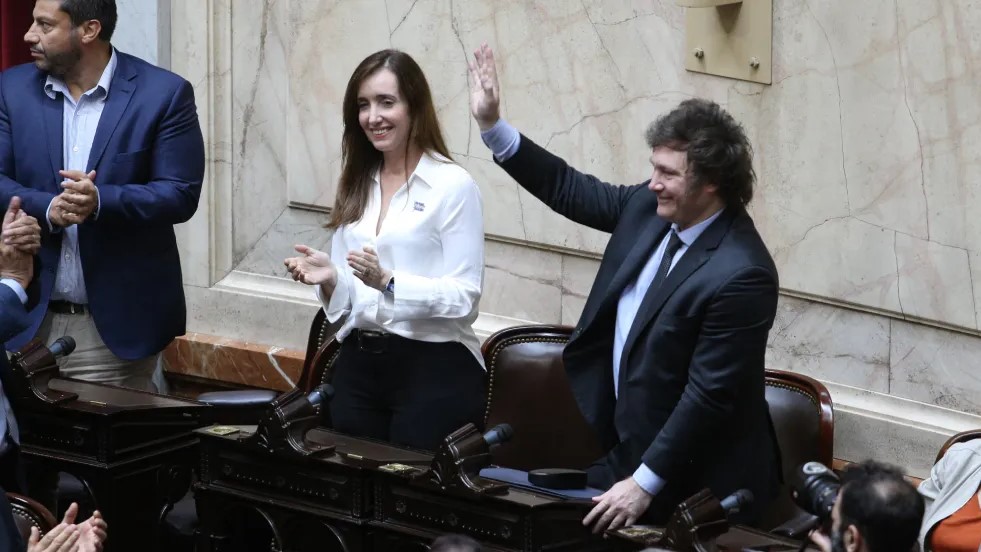 Milei y Villarruel fueron el centro de atención de la tarde y muchos legisladores de la oposición, especialmente los aliados del PRO, hicieron fila para saludarlos.