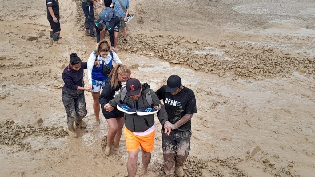 En la zona de la Quebrada, las lluvias también hicieron lo propio, tal es así que el arroyo Chalala en Purmamarca, aumentó significativamente su caudal y arrastró una gran cantidad de sedimentos sobre la calzada de ruta nacional 52, provocando el corte de la circulación vehicular durante largas horas. En ese marco, personal que atendió la situación de emergencia, evacuó a una gran cantidad de personas que se encontraban en la zona y los ayudó a trasladarse a un lugar en busca de resguardo de la tormenta.
