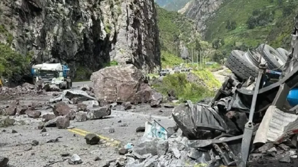 Un derrumbe de piedras aplastó 2 camiones en Perú