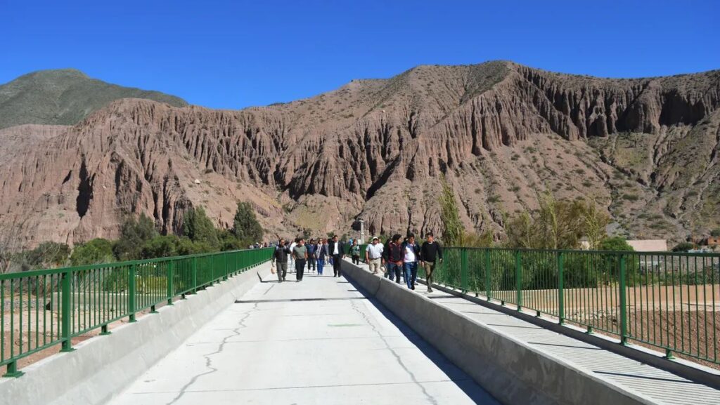El gobernador Carlos Sadir, junto al Ministro de Infraestructura Servicios Públicos Tierra y Vivienda (MISPTyV) Carlos Stanic, recientemente dejaron habilitado el nuevo puente que une las márgenes del Río Grande a la altura de Purmamarca, situándose entre la estación Purmamarca del Tren Solar y el barrio Coquena, y la Dirección Provincial de Vialidad (DPV) recuerda que puede disfrutarse mediante tránsito vehicular y peatonal.
