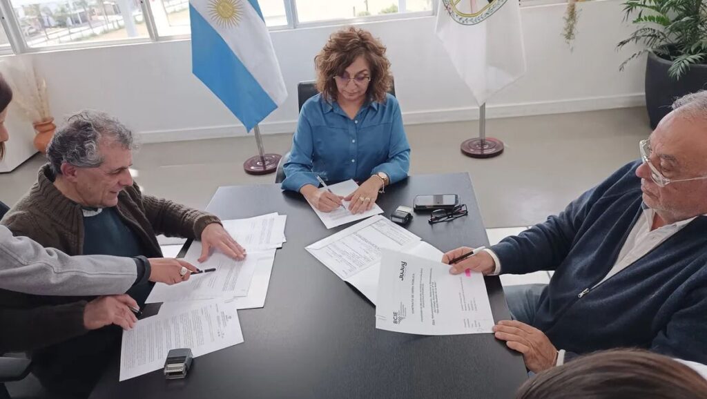 La ministra de Educación, Miriam Serrano, recibió a representantes de las empresas constructoras Bloke SRL y CONSAR SA, Ricardo Rubén Pérez y Gustavo Álvarez del Rivero, respectivamente, para firmar contratos para efectuar intervenciones en escuelas de San Pedro y San Salvador de Jujuy, en el marco del PROMACE, financiados por el BCIE en contraprestación con partida presupuestaria de la provincia.