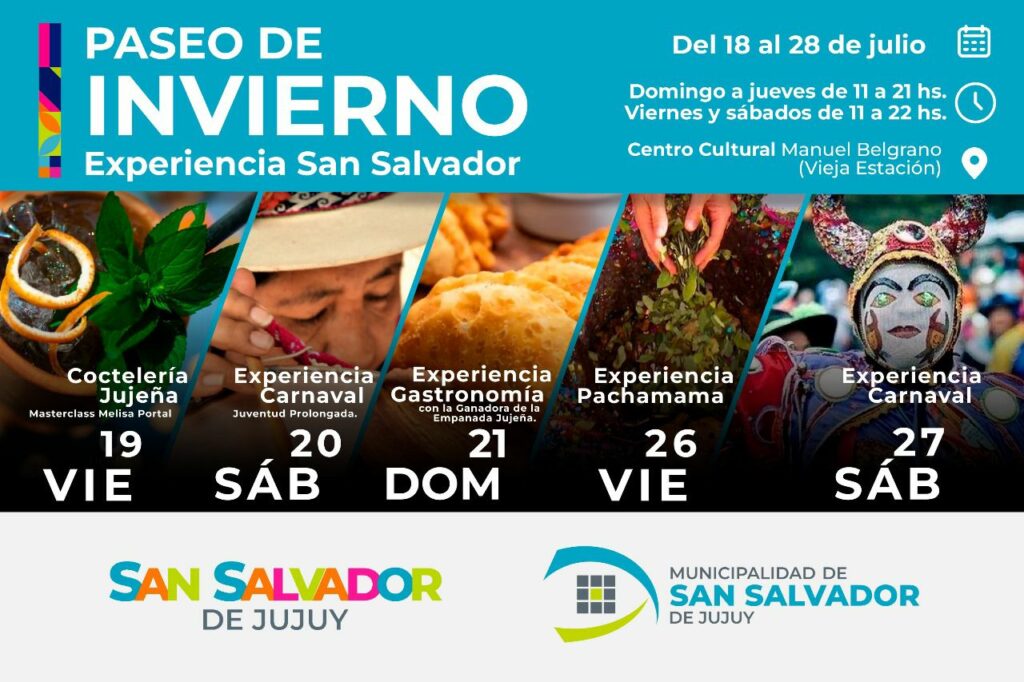 La Municipalidad de San Salvador de Jujuy invita a todos los vecinos y turistas a disfrutar del Paseo de Invierno “Experiencia San Salvador” que se realizará del 18 al 28 de julio en el Centro Cultural Manuel Belgrano, con entrada libre y gratuita. De domingos a jueves las puertas estarán abiertas de 11 a 21 horas, mientras que los viernes y sábados de 11 a 22 horas .