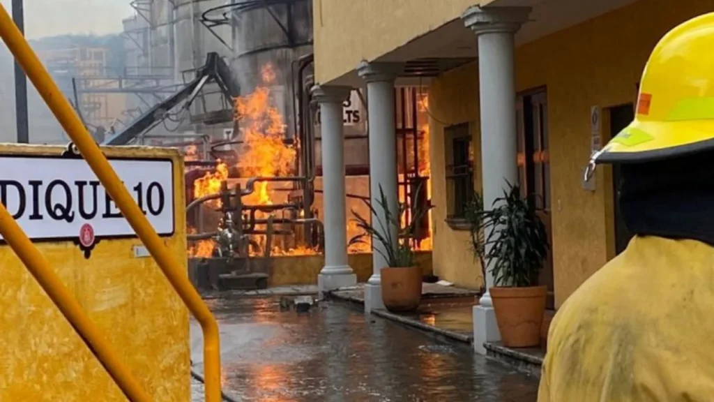 Según los primeros informes, el incidente se suscitó presuntamente por la explosión en una caldera y se propagó hacia los contenedores de 219.000 litros.
