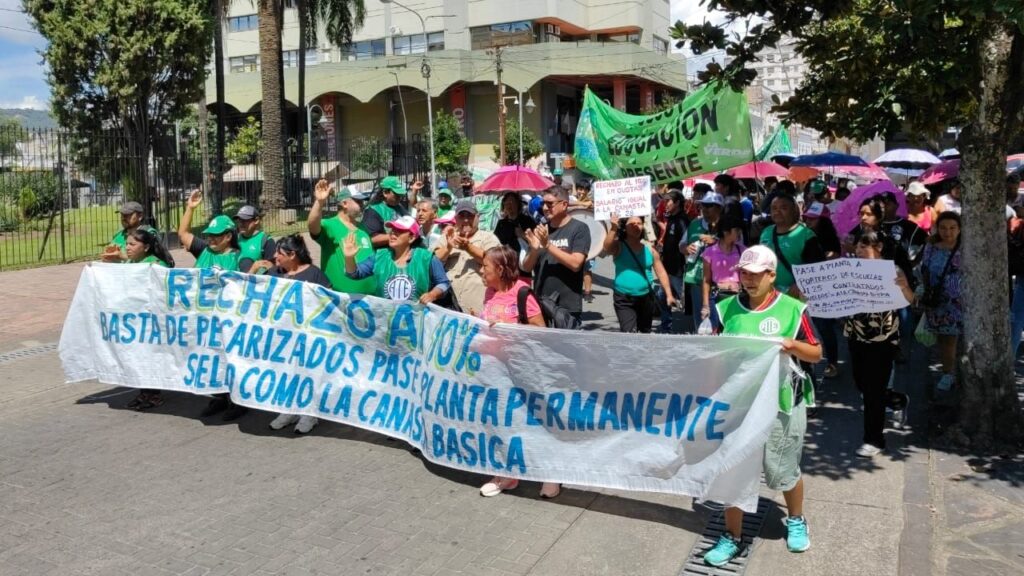 Dirigentes de la Asociación de Trabajadores del Estado (ATE) Jujuy movilizaron este miércoles rechazando el 10% de aumento salarial ofrecido por el gobierno de Jujuy durante la primera reunión de paritaria y anunciaron su adhesión al paro nacional convocado para este jueves 27 de febrero, en el marco de una jornada de lucha. La medida de fuerza será sin asistencia a los lugares de trabajo e incluirá a empleados nacionales, provinciales y municipales.