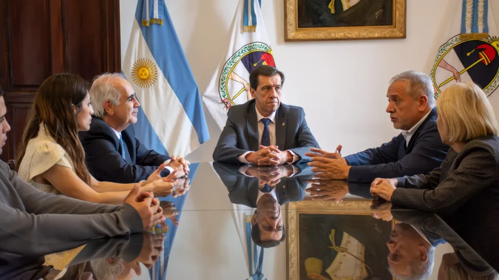 El gobernador Carlos Sadir se reunió con el subsecretario de Economía del Conocimiento de la Nación, Santiago Pordelanne, y miembros de su equipo para intercambiar experiencias y acordar acciones que fortalezcan la Economía del Conocimiento (EdC) en la región, tanto en el sector público como en el privado. El encuentro tuvo lugar en el Salón Blanco de Casa de Gobierno y contó con la presencia del ministro de Desarrollo Económico y Producción, Juan Carlos Abud; la directora de Servicios Basados en El Conocimiento, Belén Castro y la vicepresidenta de Zona Franca Perico, Sonia Leis.