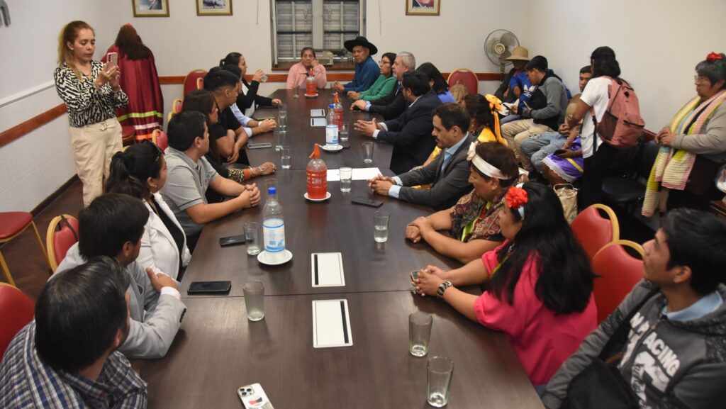 En el marco de la próxima conmemoración de la Semana de los Pueblos Originarios, diputadas y diputados provinciales recibieron en el Salón Presidente Raúl Alfonsín a representantes de comunidades guaraníes de la localidad de Caimancito, quienes fueron reconocidos con la Declaración de Interés Legislativo.