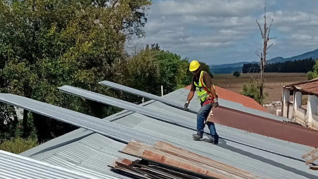 El Ministerio de Educación de Jujuy, en el marco de una serie de obras de refacción de edificios educativos, está realizando un cambio general en el techo del SUM de la Escuela N°54 “Profesor Filiberto Urbano Carrizo” de San Vicente, Monterrico.