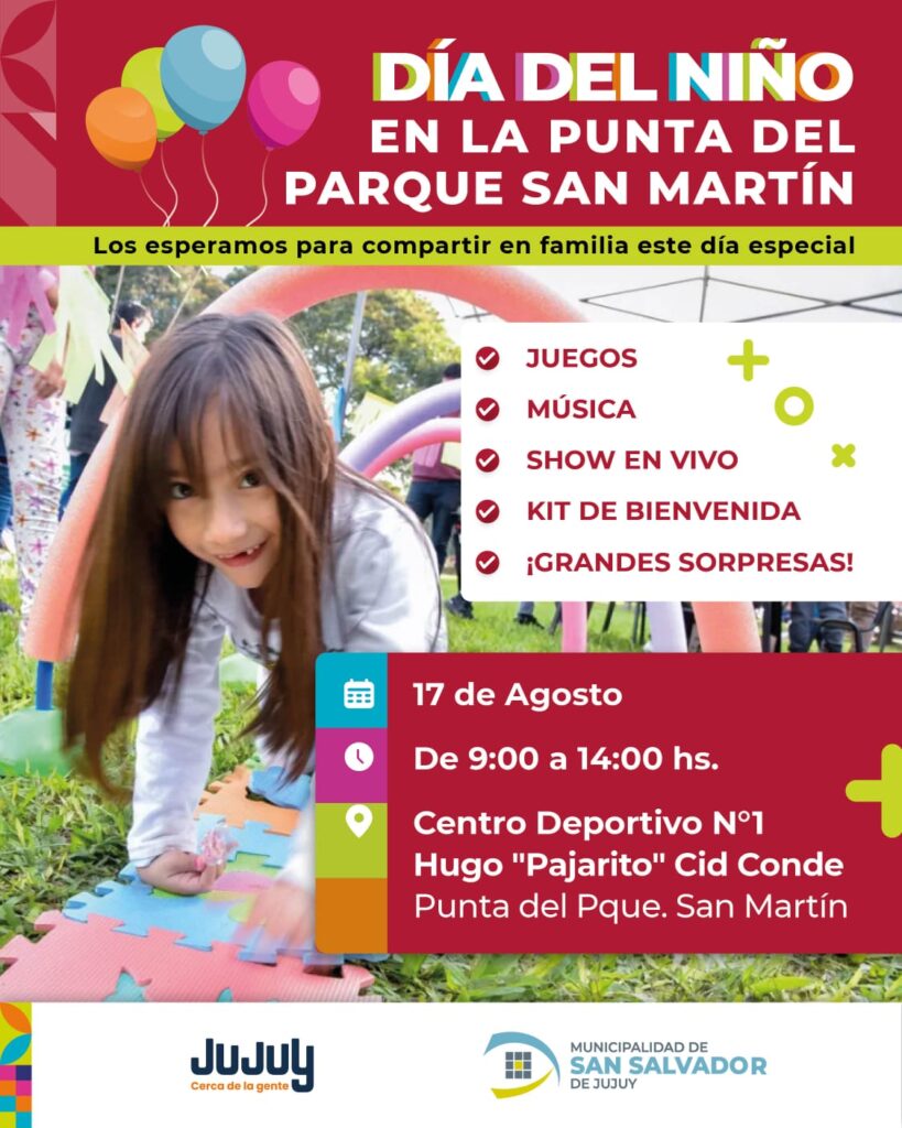 La celebración destinada especialmente para los niños y niñas de la ciudad, se desarrollará en el Centro Deportivo Nro. 1 Hugo “Pajarito” Cid Conde del Parque San Martin, organizado por el municipio capitalino y el Gobierno de la Provincia; el evento propone a la familia una mañana colmada de alegría, juegos, música en vivo, espectáculos, sorpresas, entrega de kits de bienvenida y muchas actividades recreativas hasta las 14 horas.