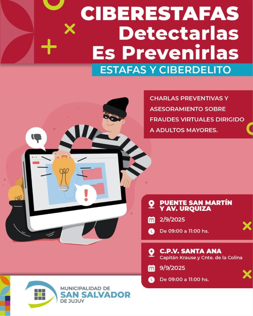 Con el objetivo de brindar herramientas que permitan identificar y evitar fraudes virtuales, la Municipalidad de San Salvador de Jujuy llevará adelante un ciclo de charlas preventivas sobre ciberestafas y ciberdelitos, especialmente orientadas a adultos mayores, uno de los grupos más expuestos a este tipo de delitos.
