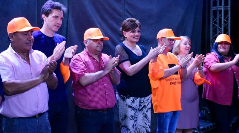María Inés Zigarán y Mario Pizarro, candidatos a diputados nacionales por el Frente Jujuy Crece en Provincias Unidas, encabezaron el acto de presentación de la propuesta electoral de la lista naranja 503 en Monterrico.