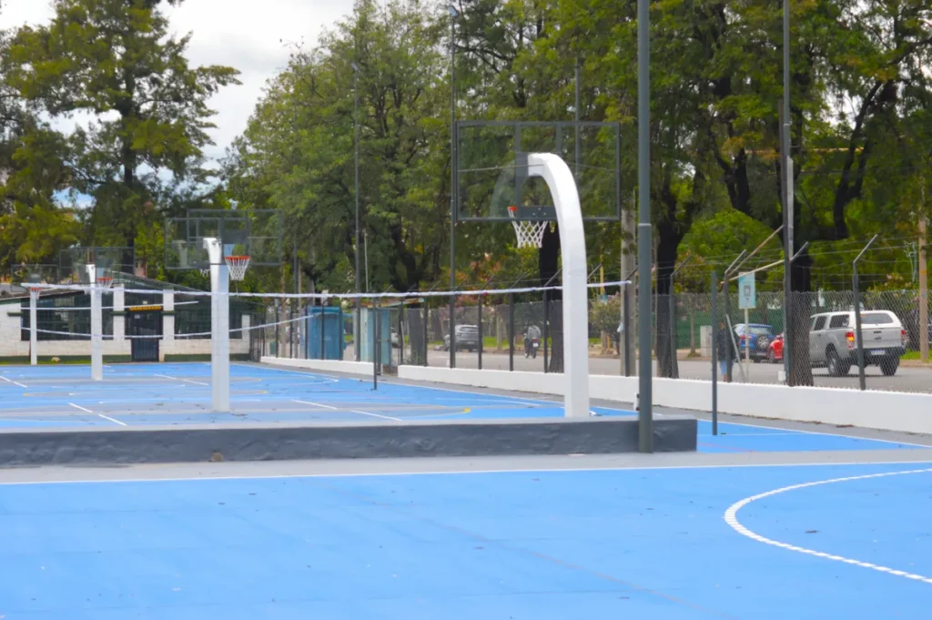El Gobierno de Jujuy, mediante la Dirección Provincial de Arquitectura (DPA) , desplegó obras en cuatro canchas del Regimiento de Infantería de Montaña 20 (RIM 20) , adonde la colocación de seis aros y tableros de básquet y redes de vóley completan intervenciones que fueron desde demoliciones o pintura técnica de piso, a nueva iluminación.