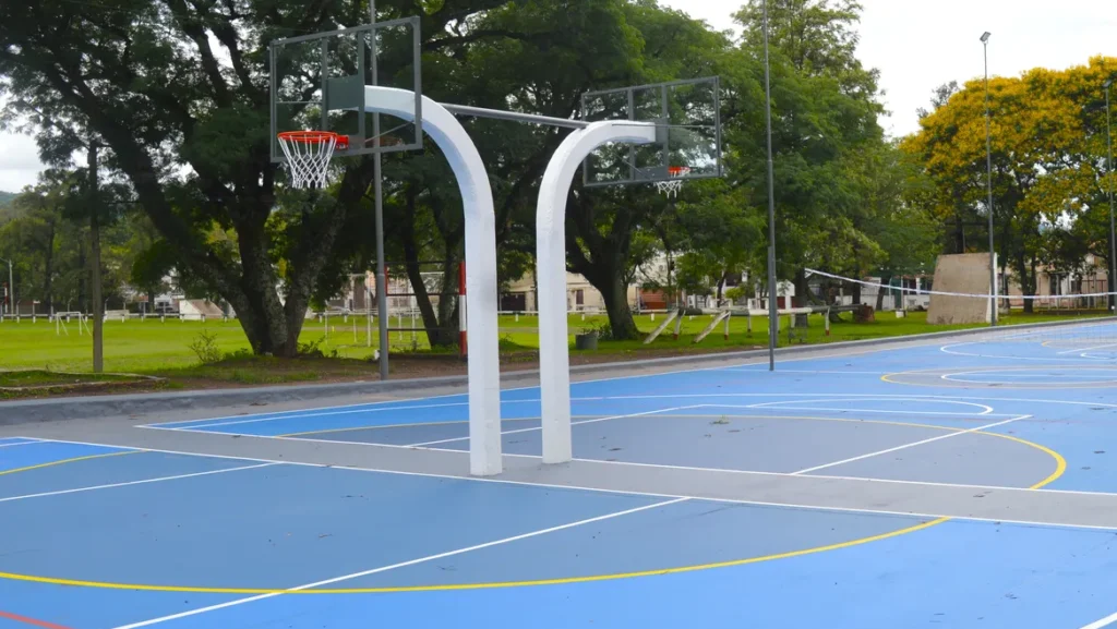 El Gobierno de Jujuy, mediante la Dirección Provincial de Arquitectura (DPA) , desplegó obras en cuatro canchas del Regimiento de Infantería de Montaña 20 (RIM 20) , adonde la colocación de seis aros y tableros de básquet y redes de vóley completan intervenciones que fueron desde demoliciones o pintura técnica de piso, a nueva iluminación.