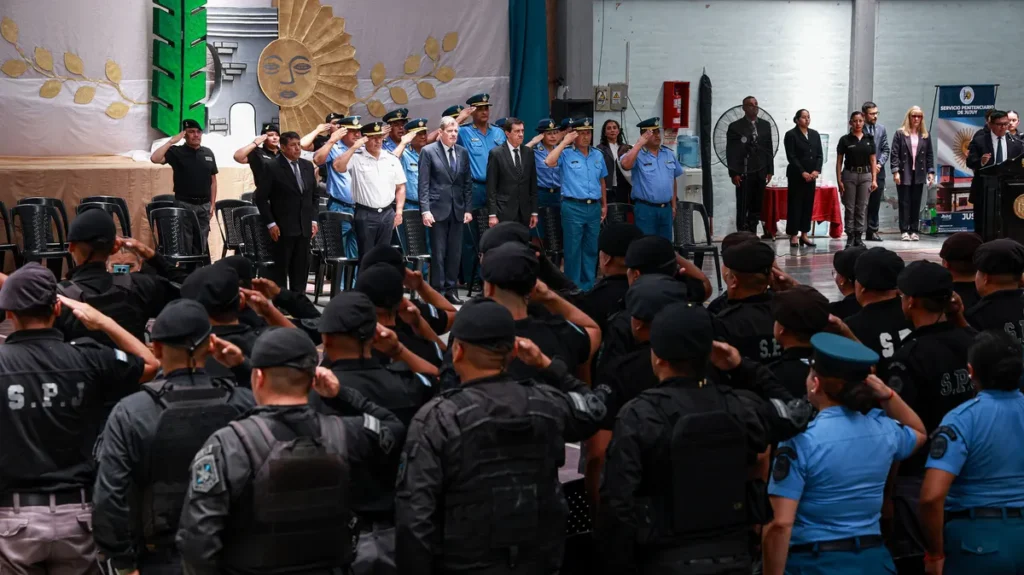 En su mensaje, el gobernador agradeció en nombre de todos los jujeños la tarea cotidiana que realiza el personal policial y penitenciario en cada uno de los destinos donde cumple funciones, y destacó el trabajo articulado del Ministerio de Seguridad, la Policía de la Provincia, el Servicio Penitenciario y las distintas áreas del Gobierno que hicieron posible la concreción del proceso de ascensos.