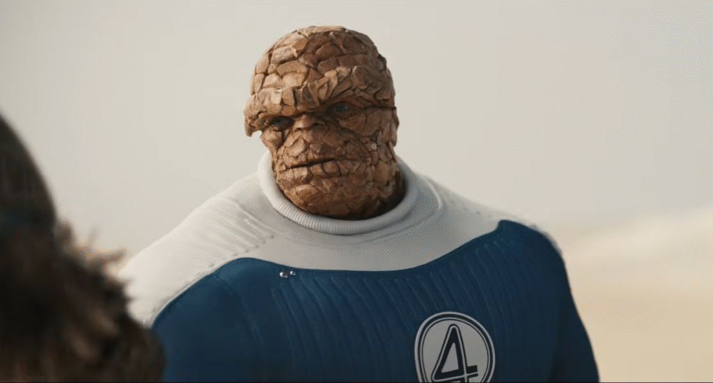 Uno de los momentos más celebrados del avance es la aparición de Ben Grimm, La Mole, integrante de los Cuatro Fantásticos. Interpretado por Ebon Moss-Bachrach, el personaje conserva su apariencia clásica: cuerpo rocoso, fuerza colosal y un tono irónico que contrasta con la solemnidad del encuentro.