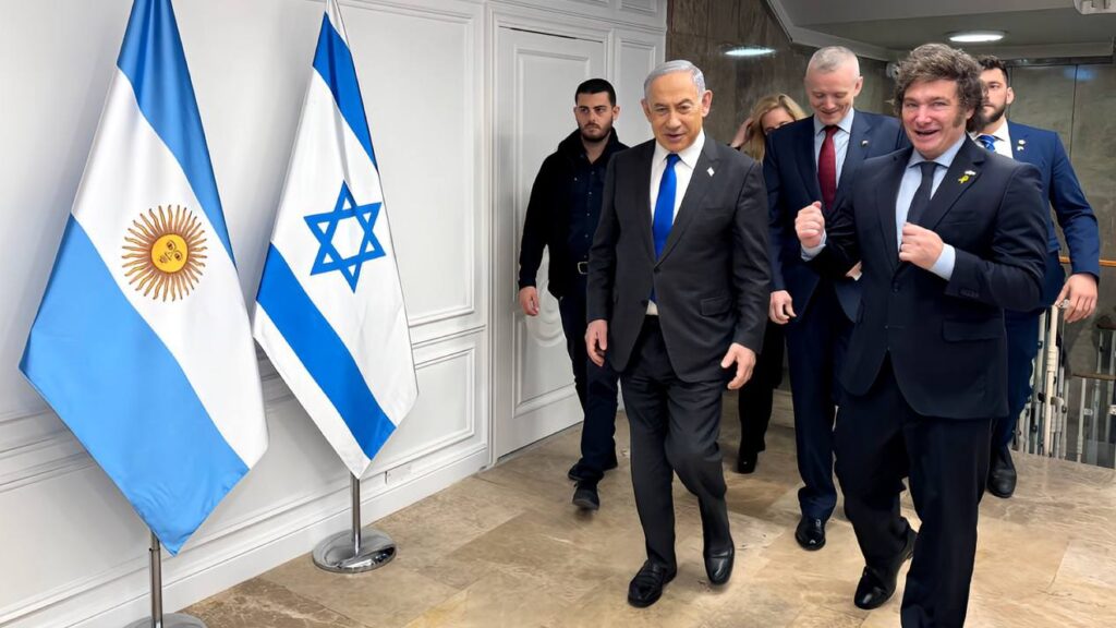 El artículo también cuestiona la política exterior del Gobierno argentino, al considerar que está alineada con el eje Estados Unidos–Israel y no responde a intereses propios.