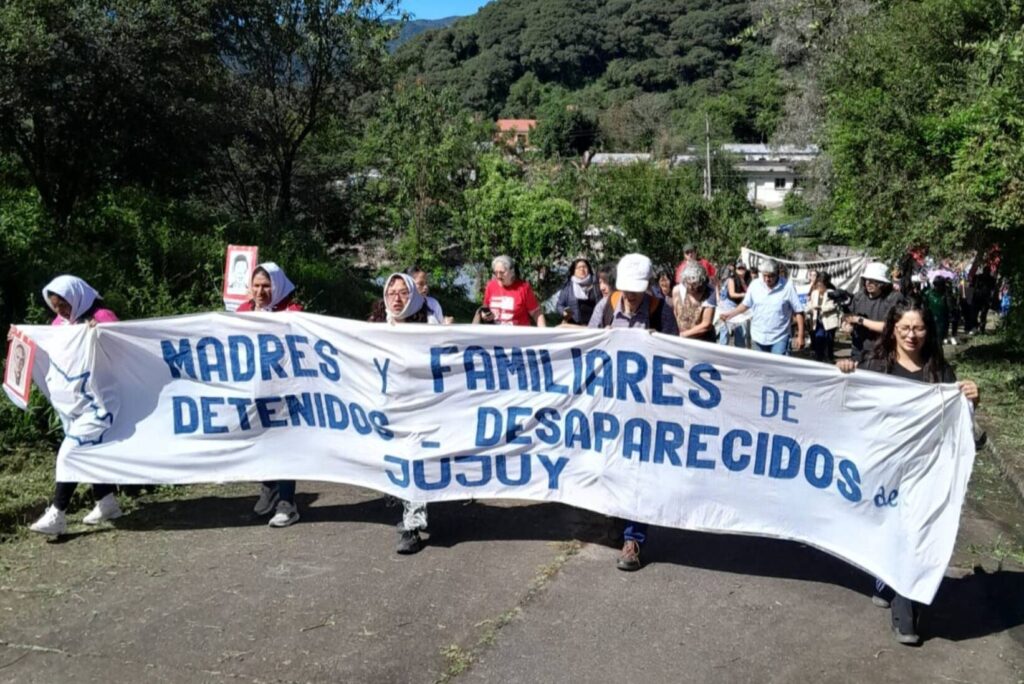 Durante la movilización, uno de los símbolos más destacados fue una bandera bordada con los nombres de los 145 desaparecidos jujeños, elaborada por organismos de derechos humanos como forma de mantener viva la memoria de cada víctima.