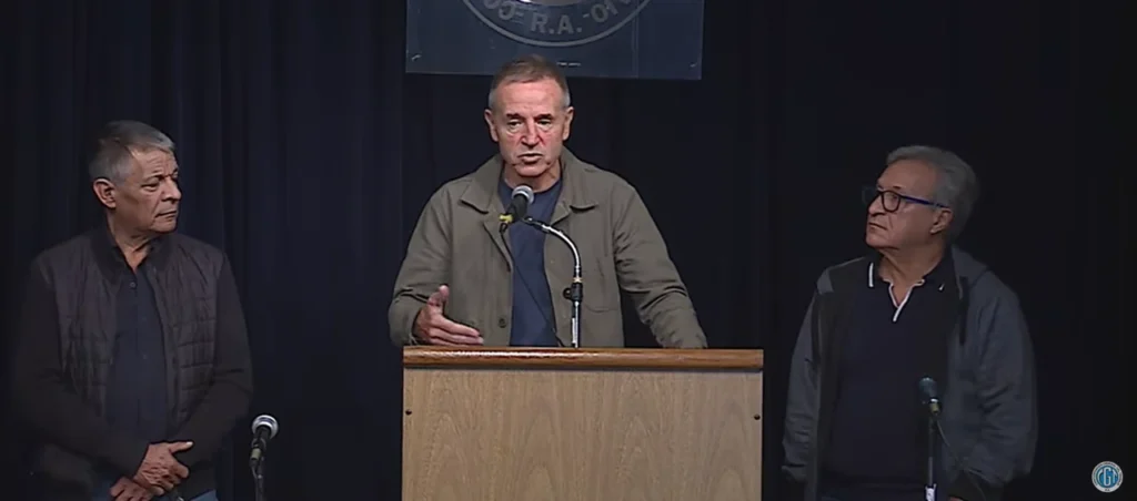 El encargado de anunciar la medida fue Jorge Sola, uno de los triunviros de la central obrera y referente del Sindicato del Seguro.