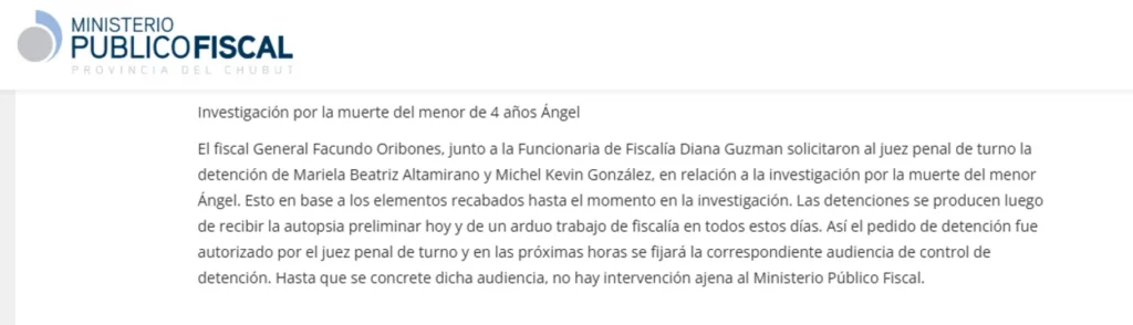 Detuvieron a la madre de Ángel y a su padrastro por homicidio agravado en Comodoro Rivadavia